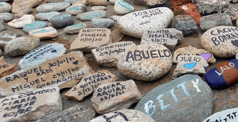 Marcha de las piedras: homenaje a las víctimas de Covid-19 y protestas contra el gobierno en Plaza de Mayo y frente a las quinta de Olivos.