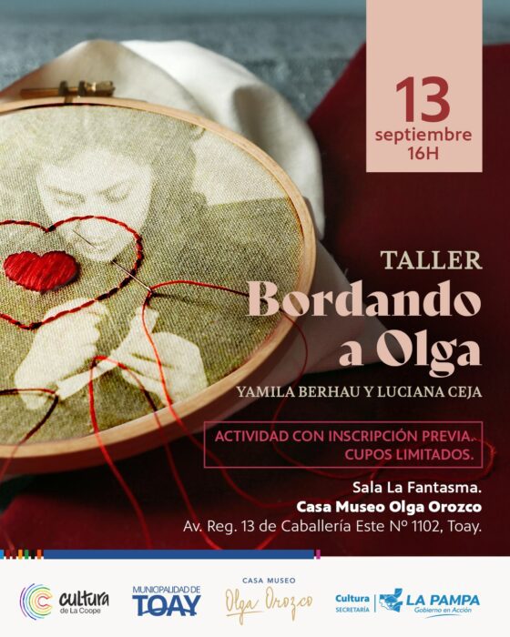 16h Taller «Bordando a Olga» en la Casa Museo Olga Orozco (Av. Regimiento 13 de Caballería 1102), Sala La Fantasma. Una propuesta que fusiona la poesía de la reconocida escritora con el arte del bordado. Al finalizar, cada participante podrá llevarse su pieza de arte. La actividad está abierta a todo público y los materiales están incluidos.