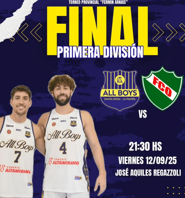 21.30h Basquet: final primera división All Boys vs FCO en el Estadio José Aquiles Regazzoli.
