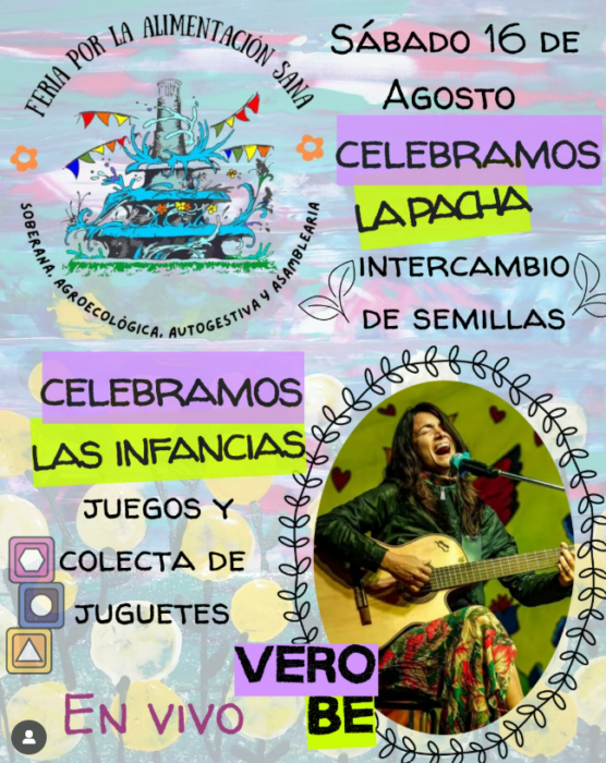 10h Feria por la alimentación sana con la participación de Vero Be en el Parque Oliver. Se celebrará a las infancias: juegos y colecta de juguetes.