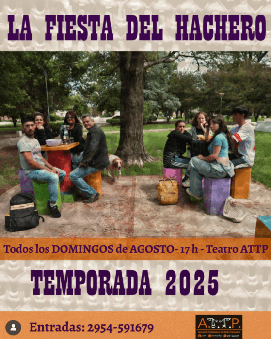 17h “La Fiesta del Hachero” en el Teatro ATTP (Bolivia y José Luro). Hace calor, la música crece, el dilema de Franca también: qué es al fin vivir sino elegir alguna muerte. Las entradas pueden adquirirse por adelantado por WhatsApp al número 2954-59 1679.
