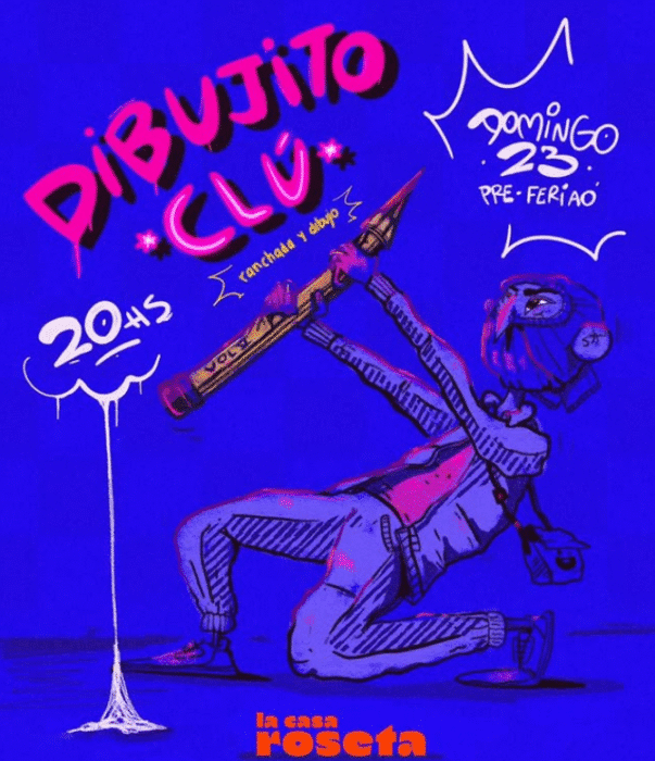 20h Dibujito clu (ranchada y dibujo) en la Casa Roseta (Quintana 510, casi Cervantes). Una invitación a dibujar, en compañía con música, brindis y gulita, un par de propuestas para ayudar a aflojar la mano, cero academia, solo ganas de pasarla bien. No es un taller, ni clase de dibujo. Simplemente una juntada en el que usamos un par de actividades como disparadoras para darle manija al lápiz.
