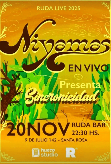 22.30h se presenta Niyamas en Ruda Bar (9 de julio 142). La banda presenta “Sincronicidad”.