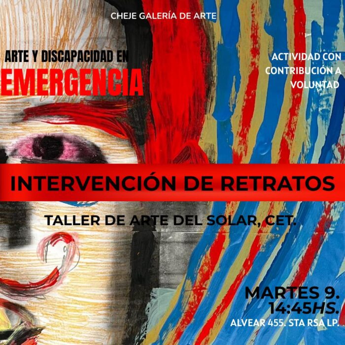 14.45h Intervención de retratos de Arte y Discapacidad en Emergencia en Cheje Casa Cultural (Alvear 455). Observación de exposición, actividad compartida. Les esperamos para conocernos y crear juntos. Confirmar asistencia ya que los cupos son reducidos.