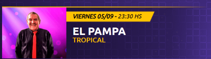 23.30h se presenta El Pampa (tropical) en el Casino Club (Av. Arturo Illia 850).