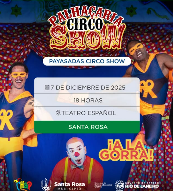 18h “Palhaçaria Circo Show – Payasadas Circo Show”, una propuesta brasileña, en el Teatro Español (Hilario Lagos 44). Entrada gratuita, a la gorra. Sumate a esta experiencia única y viví una noche inolvidable.