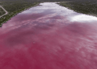 Una laguna se tiñó de rosa en Chubut, y denuncian contaminación de la industria pesquera