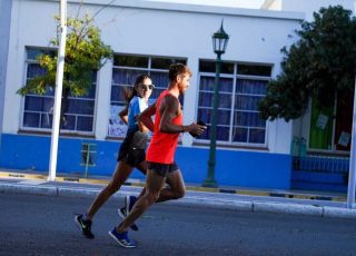 Dos atletas de elite entrenando en las calles de Santa Rosa. Calentando motores y reconociendo el terreno.