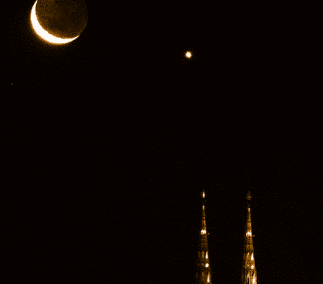 Conjunción de la Luna y Venus, sobre la Basílica de Luján.