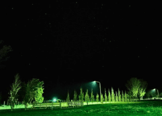 "Anoche, sobre el acceso del pueblo. Se veía maravilloso y calmo el cielo, lleno de estrellas, entre el verde de la primavera que se está presentando."