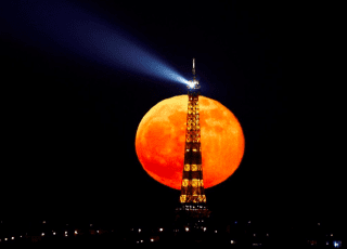 La superluna "rosa" de abril se vio en todo el mundo de una manera impactante entre el día lunes y martes. Así se vio detrás de las Torre Eiffel en París.