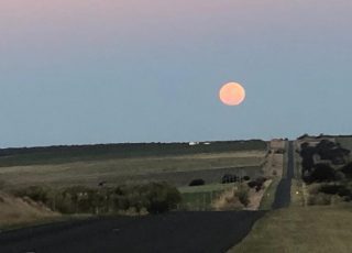 Luna llena en la Ruta Provincial 14, sobre el Paraje La Araña, Departamento de Toay, La Pampa. Por Lisandro Ranocchia.