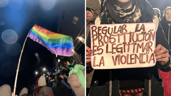 De todo eso hay que alejarse. Desligarse de los actos con lo que no se acuerda, dejarlos a la vista para intentar identificarlos, alejarse de la zona de posible represión: no sería la primera vez que una marcha termina con balas de goma o gas lacrimógeno. En las mochilas hay agua con bicarbonato de sodio y vinagre por si llega el caso, pero nadie quiere tener que usarlos. Algunas voces se alzan con miedo y plantean irse de la zona, intentar alejarse de la congregación y abandonar la lucha. Nadie las culpa, el miedo se siente en el cuerpo. El miedo es real.