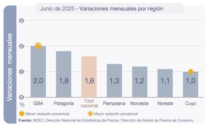 En cuanto a la variación por región, en la región pampeana fue del 1,3%, menor al total nacional.