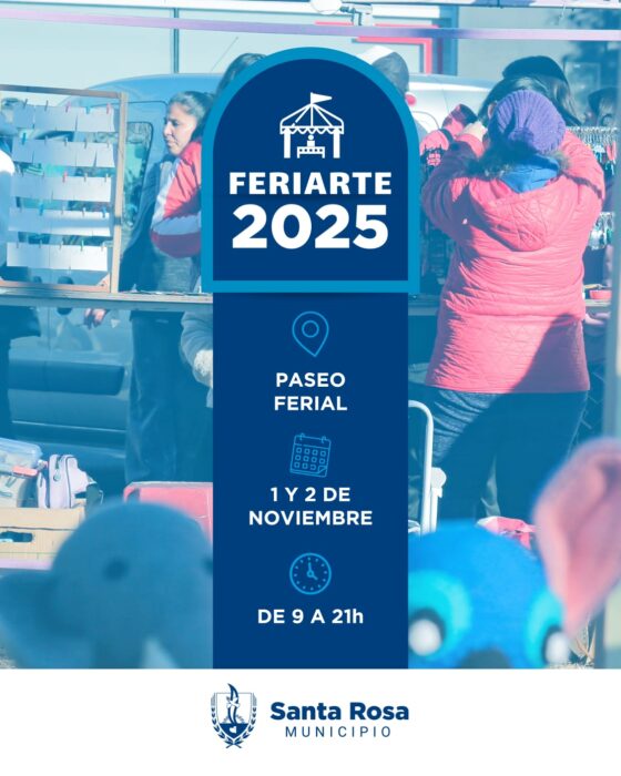 9 a 21h FeriArte en el predio de las Vías del Ferrocarril (M.T. de Alvear y Raúl B. Díaz). El primer fin de semana de noviembre llega con la última edición del año de FeriArte, el clásico encuentro que reúne a artesanas, artesanos y manualistas de Santa Rosa.