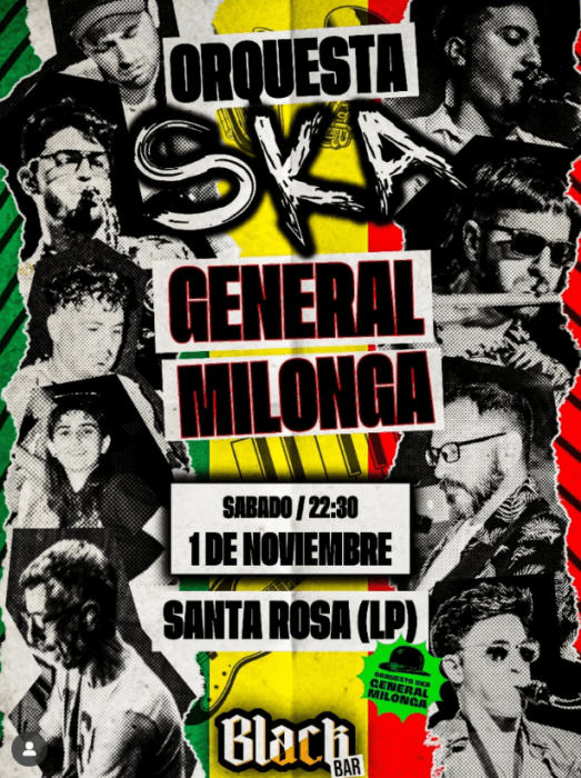 22.30h se presenta la Orquesta Ska y mucho Reggae en Black bar (Avellaneda 1). Con entrada libre y gratuita. Para bailar, tomar unas ricas cervezas y seguir bailando.