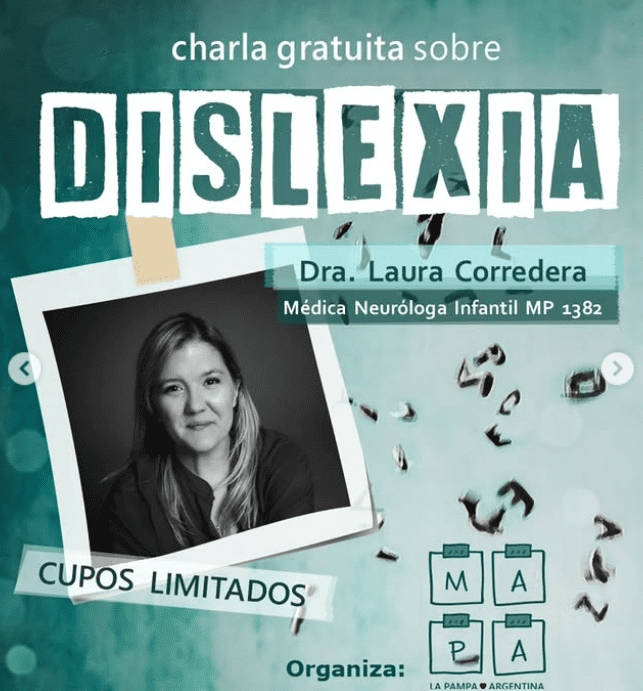18.30h Charla abierta al público sobre Dislexia en el Hospital Segundo Taladriz (San Luis y Balcarce). La Dra. Laura Corredera, Médica Neuróloga Infantil, dará una charla gratuita con cupos limitados.