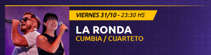 23.30h se presenta La Ronda (cumbia y cuarteto) en el Casino Club (Av. Arturo Illia 850).