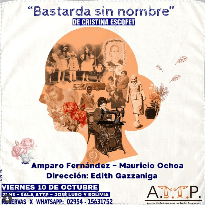 21h Teatro: Bastarda sin nombre el Teatro ATTP (José Luro y Bolivia). Entradas a la gorra. Reservas al 02954 – 15631752.