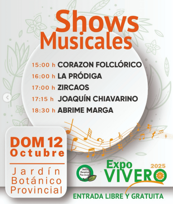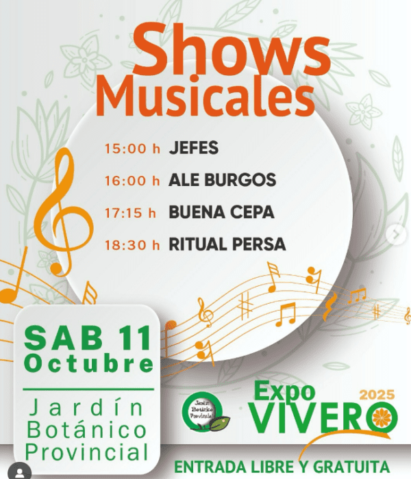13° edición ExpoVivero en el Jardín Botánico Provincial (Avenida Perón y Chimango). Participación de viveristas, emprendedores y los viveros forestales provinciales, con el objetivo de revalorizar y visibilizar la producción local. Los stand expondrán diferentes especies de plantas tanto nativas como exóticas, entre ellas especies ornamentales, cítricos, de arbolado, hortícolas, etc. y accesorios de jardín. Se podrá disfrutar de espectáculos musicales de diferentes artistas pampeanos y patio de comidas con food tracks. Entrada libre y gratuita de 10 a 20 hs.