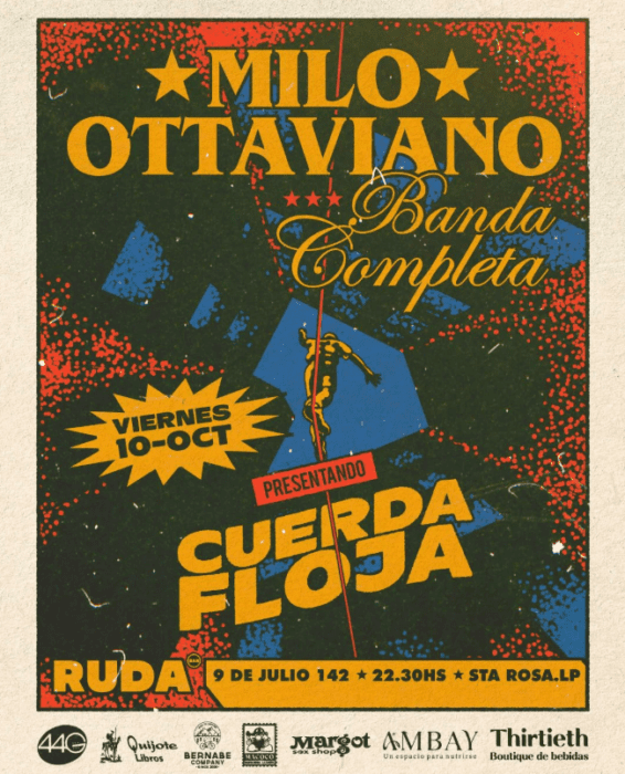 22.30h se presenta Milo Ottaviano en Ruda Bar (9 de julio 142). Entradas anticipadas limitadas $8.000 (incluye consumición).