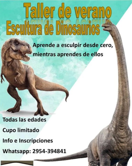 Para quienes estén en Santa Rosa, y tengan interés en los talleres de verano. Pateando el Tablero será el espacio donde, durante enero y febrero, se dará el taller de Esculturas de Dinosaurios, está pensado para todas la edades. Los cupos son limitados por lo que para obtener información y poder inscribirse comunicarse al WhatsApp 2954-394841.