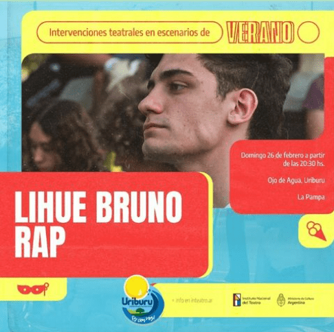 El domingo en el balneario de Ojo de Agua, Uriburu, se presentará Lihue Bruno a partir de las 20.30 hs, se podrá disfrutar de «Intervenciones teatrales en escenarios de verano«, el programa de Instituto Nacional de Teatro. El evento tendrán entrada libre y gratuita.